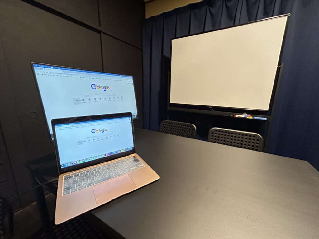 ホワイトボード、モニター、机、椅子4つ、USB-C USB-Cケーブル(専用の)、HDMI-HDMIケーブル
